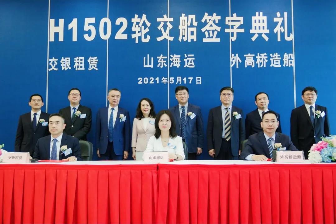 5月17日,公司与德国莱茵集团10艘18万载重吨干散货船项目第9艘船舶“山东德丰”轮命名交船仪式在上海外高桥隆重举行。集团公司党委书记、董事长包剑英,集团公司副总经理、海运股份党委书记、董事长于冰,集团公司总经济师高涛,公司董事长、总经理顾志伟;交银租赁董事长赵炯,外高桥造船党委书记、董事长王琦等相关方领导出席仪式。