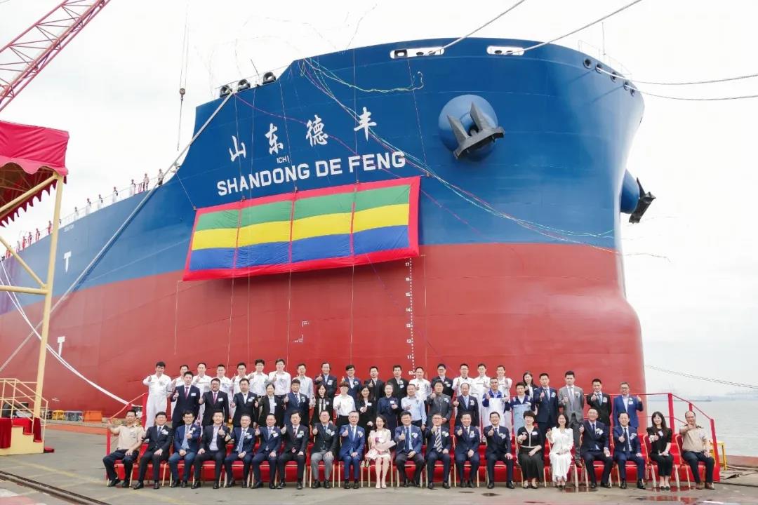 公司10艘18万载重吨干散货船项目第九艘船舶“山东德丰”轮命名交船仪式隆重举行