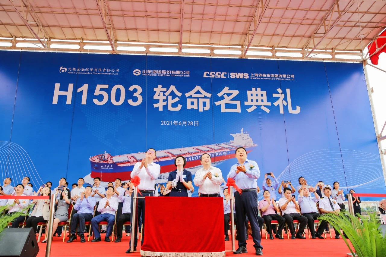 6月28日,在喜迎中国共产党百年华诞之际,“山东德泰”轮在上海外高桥造船厂顺利交船并命名,这标志着公司10艘18万载重吨干散货船经营性租赁项目顺利收官,以德祥、德泰等为主力的10艘干散货船,将持续提升海运船队控制运力规模,助力山东海运打造全球一流航运物流综合服务商。