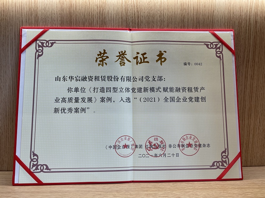 近日,华宸租赁党建工作再获殊荣。在第十八届中国企业发展论坛第四次企业党建研讨会上,公司提报的《打造四型立体党建新模式赋能融资租赁产业高质量发展》案例,作为全国融资租赁行业特色党建创新范例,成功入选全国企业党建创新优秀案例,引发《中国企业报》《红旗出版社》等中央级媒体的高度关注。近年来,公司党支部紧紧围绕山东海运“一体两翼”整体战略布局,始终把党的建设作为引领公司高质量发展的“根”与“魂”,以顶层驱动、上下推动、内外互动、创新带动为抓手,持续深化“党建在路上”品牌创建成果,着力打造富于租赁行业特色、航运金融特点的党建成果。2020年以来,公司“四型党建”创新做法,被集团公司党建内刊转载,“党建指导员”新型治理模式、党建联创联建机制等原创性探索尝试,畅通了与业务客户、租赁同业的协作渠道,有力地推动了公司高质量发展。