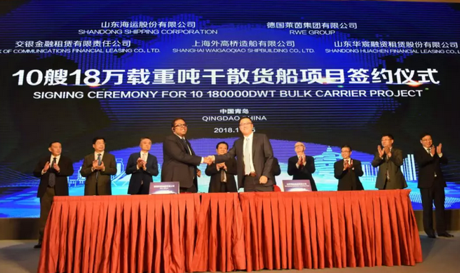 近日,山东海运股份有限公司(下称“山东海运”)与德国莱茵集团有限公司、交银金融租赁有限责任公司(下称“交银租赁”)、上海外高桥造船有限公司、山东华宸融资租赁股份有限公司(下称“华宸租赁”)在青岛签订10艘18万载重吨干散货船项目,合约总金额逾19亿美元,这是近年来全球干散货运输市场为数不多的大单。签约仪式当天,山东海运与华宸租赁、交银租赁签署了10艘干散货船舶光租合约,标志着华宸租赁首单船舶租赁合约成功落地。